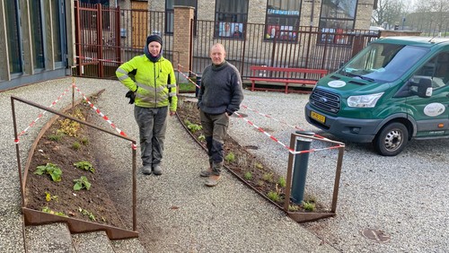 Pladsen har aldrig rigtig fået den opmærksomhed, den fortjener. Men NU sker der noget. Gartnerne Gitte Mortensen og Ilkka fra Kasvu Haver (som også lavede vejbedene på Valløvej) har tilplantet bedene op mod Sognehuset. Vi glæder os enormt til at se resultatet til foråret!